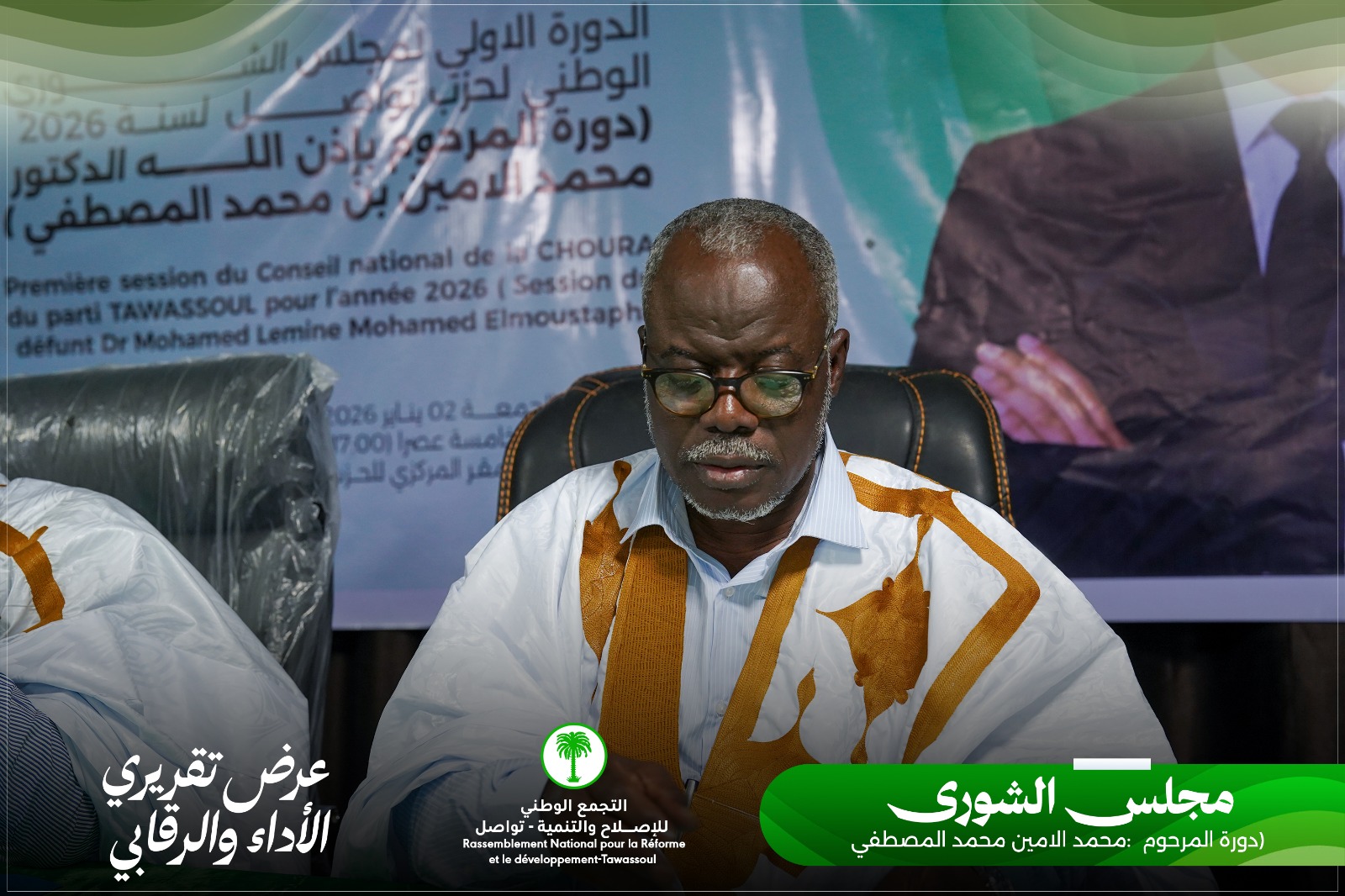 انعقدت ـ بفضل الله ـ في المقر المركزي لحزب التجمع الوطني للإصلاح والتنمية ـ تواصل ـ فعاليات الدورة العادية الأولى للعام 2026 لمجلس الشورى في الفترة من 02-01-2026 إلى 03-01-2026، وقد ناقش المشاركون خلالها التقارير الحزبية المتعلقة بالرقابة والأداء على المستويات السياسية والإدارية والتنظيمية، كما استعرضوا الأوضاع الوطنية والمستجدات السياسية، مع التركيز على معاناة المواطنين جراء ضعف الخدمات وارتفاع الأسعار وتردي القدرة الشرائية، وقضايا الفساد والحديث عن انتشار المخدرات والجريمة.